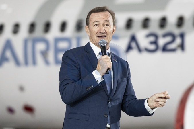 Le président Emmanuel Macron visite le site de Airbus à Toulouse à l'occasion des deux ans du plan d'investissement France 2030