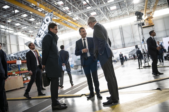 Le président Emmanuel Macron visite le site de Airbus à Toulouse à l'occasion des deux ans du plan d'investissement France 2030