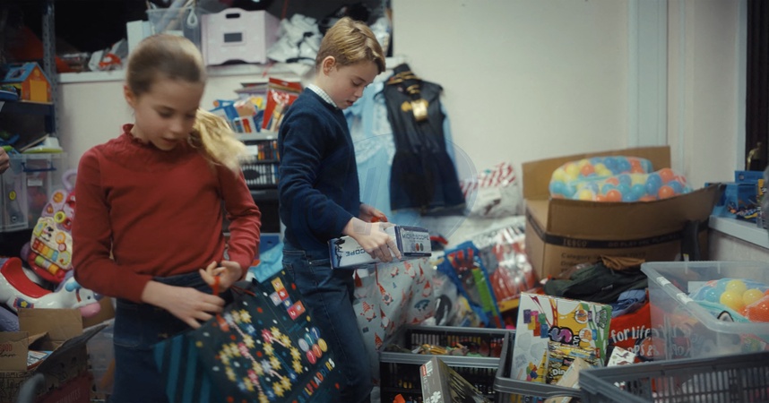 Catherine (Kate) Middleton, princesse de Galles, et ses enfants aident à préparer des sacs-cadeaux de Noël pour des familles au seuil de la pauvreté