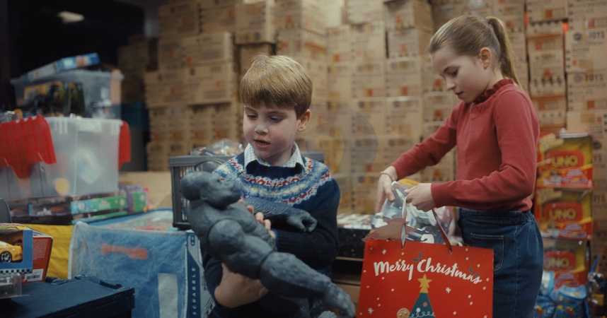 Catherine (Kate) Middleton, princesse de Galles, et ses enfants aident à préparer des sacs-cadeaux de Noël pour des familles au seuil de la pauvreté