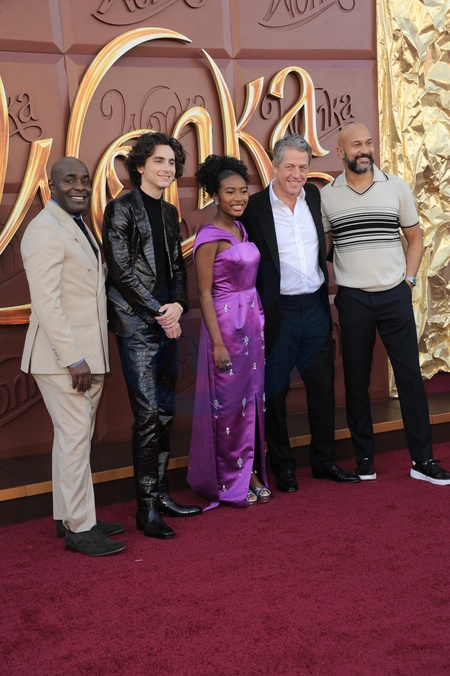 Natasha Rothwell, Paterson Joseph, Paul King, Calah Lane, Timothee Chalamet and Keegan-Michael Key at the Los Angeles premiere of 'Wonka' held at the Regency Village Theater in Westwood, USA on December 10, 2023., Credit:Lumeimages.com / Avalon