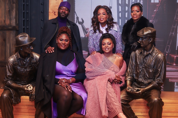 MANHATTAN, NEW YORK CITY, NEW YORK, USA - DECEMBER 12: Danielle Brooks, Blitz Bazawule, Fantasia Barrino, Taraji P. Henson and Oprah Winfrey attend as Oprah Winfrey And The Cast Of Warner Bros.' 'The Color Purple' Light The Empire State Building PURPLE to celebrate the 2023 film's release on December 12, 2023 in Manhattan, New York City, New York, United States., Credit:Jordan Hinton / Avalon