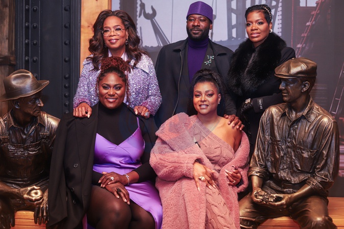 MANHATTAN, NEW YORK CITY, NEW YORK, USA - DECEMBER 12: Danielle Brooks, Blitz Bazawule, Fantasia Barrino, Taraji P. Henson and Oprah Winfrey attend as Oprah Winfrey And The Cast Of Warner Bros.' 'The Color Purple' Light The Empire State Building PURPLE to celebrate the 2023 film's release on December 12, 2023 in Manhattan, New York City, New York, United States., Credit:Jordan Hinton / Avalon