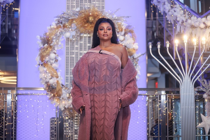 MANHATTAN, NEW YORK CITY, NEW YORK, USA - DECEMBER 12: American actress Taraji P. Henson wearing Max Mara attends as Oprah Winfrey And The Cast Of Warner Bros.' 'The Color Purple' Light The Empire State Building PURPLE to celebrate the 2023 film's release on December 12, 2023 in Manhattan, New York City, New York, United States., Credit:Jordan Hinton / Avalon