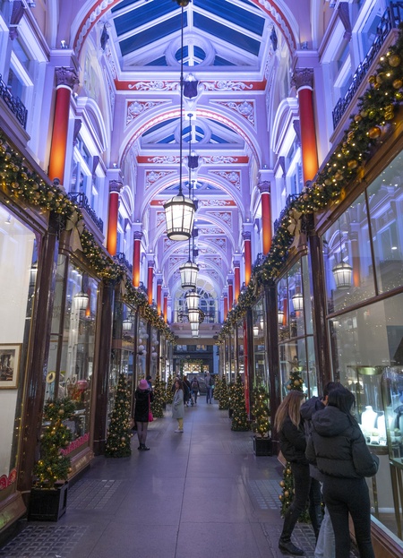 London, UK. 11th Dec, 2023. A bustling pre-christmas evening in central London with thousands viewing the impressive Christmas decorations in Westminster. Burlington Arcade, off Old Bond Street and home to luxury retail shops, is lit up for Christmas, Credit:MALCOLM PARK / Avalon