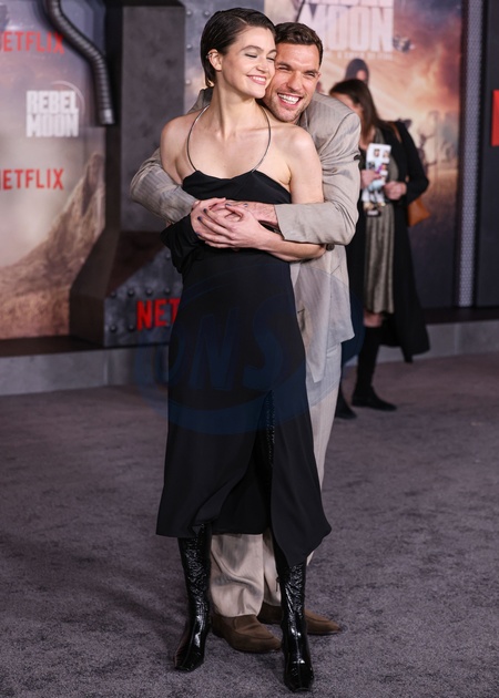 HOLLYWOOD, LOS ANGELES, CALIFORNIA, USA - DECEMBER 13: E. Duffy and Ed Skrein arrive at the Los Angeles Premiere Of Netflix's 'Rebel Moon - Part One: A Child Of Fire' held at the TCL Chinese Theatre IMAX on December 13, 2023 in Hollywood, Los Angeles, California, United States., Credit:Xavier Collin / Avalon