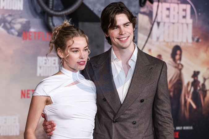 HOLLYWOOD, LOS ANGELES, CALIFORNIA, USA - DECEMBER 13: Elle Chapman and Patrick Luwis arrive at the Los Angeles Premiere Of Netflix's 'Rebel Moon - Part One: A Child Of Fire' held at the TCL Chinese Theatre IMAX on December 13, 2023 in Hollywood, Los Angeles, California, United States., Credit:Xavier Collin / Avalon