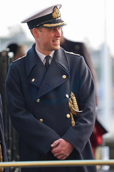 Prince William, Prince of Wales laughs during a visit to The Lord High Admiral's Divisions at Britannia Royal Naval College on December 14, 2023 in Dartmouth, England. His Royal Highness attended a training course at the Britannia Royal Naval College in 2008, following on from his father, His Majesty The King and his grandfather the late Duke of Edinburgh, who both passed through the college. NO UK USE FOR 48 HOURS, Credit:Avalon.red / Avalon