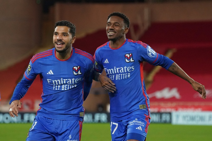 Joie Jeffinho (Lyon) - Damien Da Silva (Lyon) - FOOTBALL - AS Monaco Vs Lyon (Olympique Lyonnais) (0-1) , Ligue 1 Uber Eats à Monaco le 15 décembre 2023. © Norbert Scanella / Panoramic / Bestimage Soccer - Monaco Vs Lyon (0-1) in Monaco on 15/12/2023