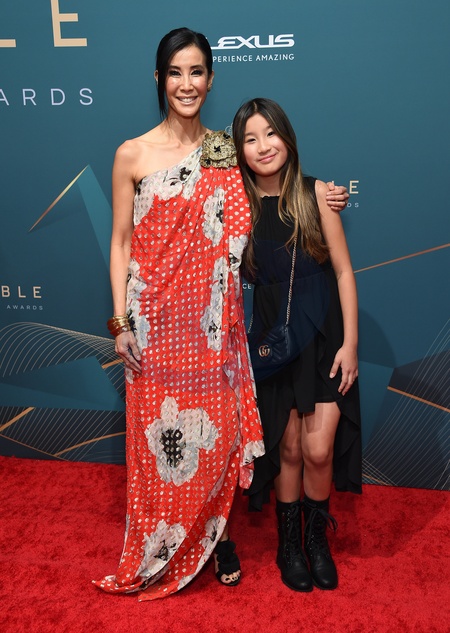 Lisa Ling and daughter arriving to the Unforgettable: The 21st Annual Asian American Awards at Beverly Hilton Hotel on December 16, 2023 in Beverly Hills