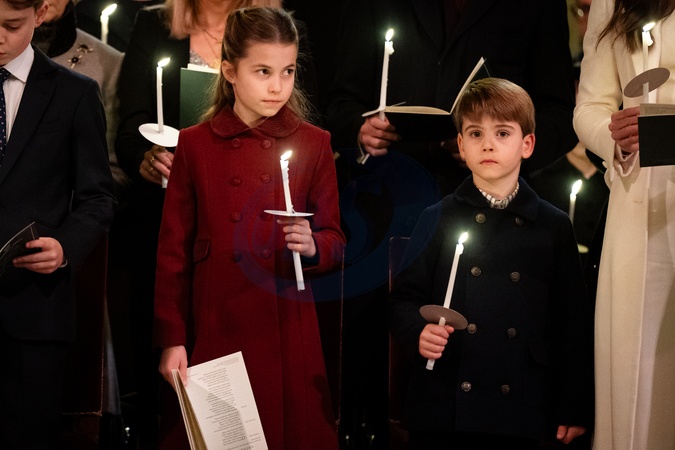 Princess Charlotte and Prince Louis during the Royal Carols - Together At Christmas service at Westminster Abbey in London., Credit:Aaron Chown / Avalon