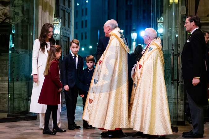 (left to right) The Princess of Wales, Princess Charlotte, Prince George, Prince Louis, the Reverend David Stanton and the Dean of Westminster Abbey, the Very Reverend Dr David Hoyle, during the Royal Carols - Together At Christmas service at Westminster Abbey in London., Credit:Aaron Chown / Avalon
