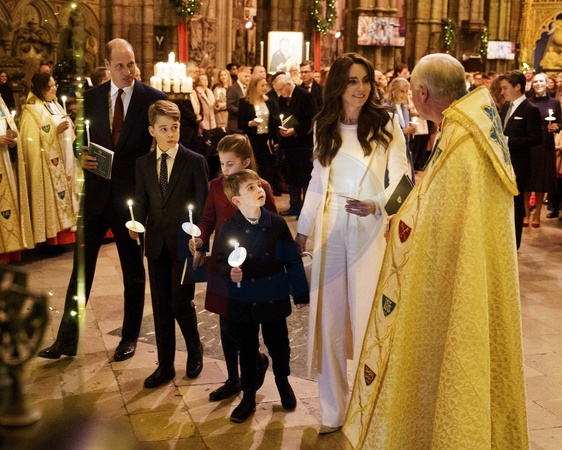 (left to right) The Prince of Wales, Prince George, Princess Charlotte, Prince Louis and the Princess of Wales during the Royal Carols - Together At Christmas service at Westminster Abbey in London., Credit:Jordan Pettitt / Avalon