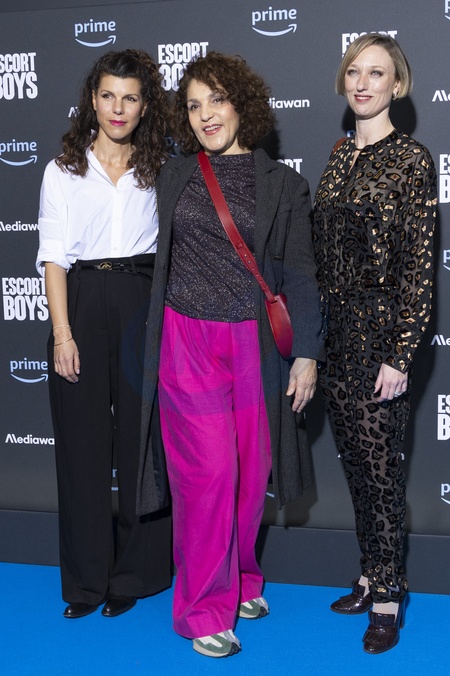 Charlotte Toledano-Detaille, Farida Rahouadj et Myriam Gharbi-de Vasselot à la première de la série "Escort Boys" au cinéma UGC Ciné Cité Les Halles à Paris le 18 décembre 2023. © Cyril Moreau / Bestimage Premiere of the "Escort Boys" series at the UGC Ciné Cité Les Halles cinema in Paris on 18 December 2023.