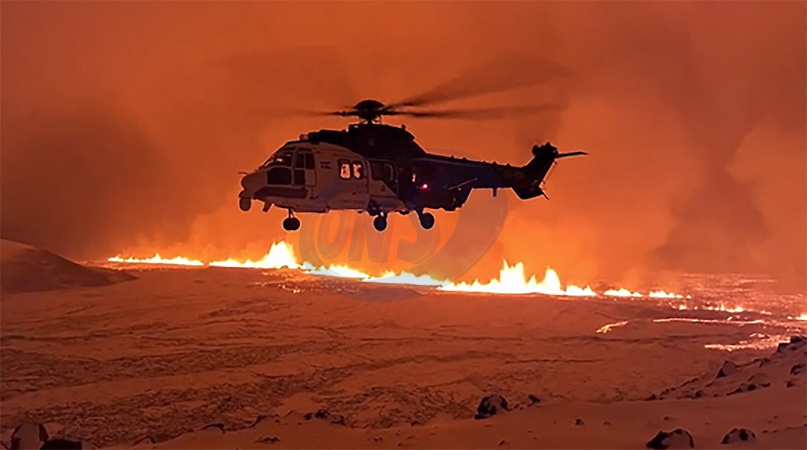 Une quatrième éruption volcanique en deux ans a commencé lundi soir en Islande, près de la localité de Grindavik qui avait été évacuée le mois dernier. © Handout Icelandic Coast Guard via Bestimage A fourth volcanic eruption in two years began Monday evening in Iceland, near the town of Grindavik which had been evacuated last month.