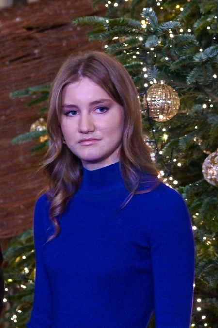 La princesse Elisabeth de Belgique - La famille royale de Belgique accueille au Palais Royal une centaine de Belges à l'occasion des fêtes de fin d'année le 19 décembre 2023. © Frédéric Andrieu / Bestimage Belgium, Brussels, 19 december 2023 Their Majesties the King Philippe and Queen Mathilde , together with Their Royal Highnesses Princess Elisabeth, Prince Emmanuel and Princess Eléonore, welcome around a hundred Belgians to the Royal Palace for the festive season. These are volunteers, employees or people supported by various social organizations with which the King and Queen have been in contact in recent years. Exceptionally, this initiative replaces the traditional Christmas concert, which cannot be held at the Palace this year due to renovation work on the façade. © F.Andrieu / Agencepeps