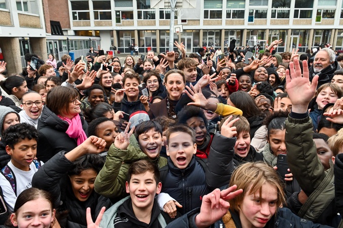 Księżniczka Claire z Belgii odwiedza szkołę średnią Athène Royale Air pur w Seraing