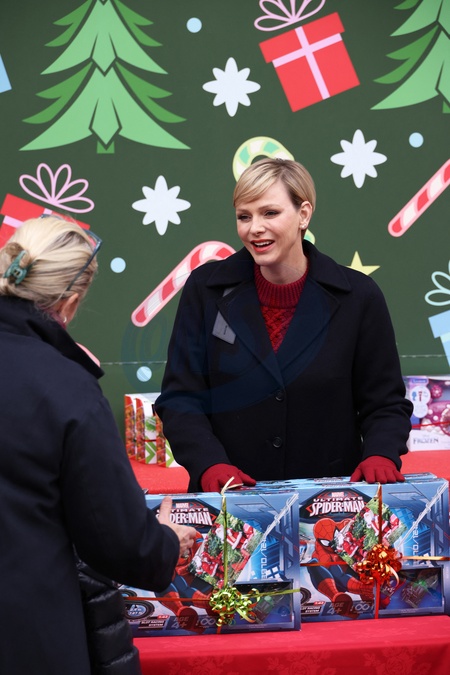 No Tabloïds - La princesse Charlène de Monaco - Remise de cadeaux de Noël aux enfants de la principauté dans la cour d'honneur du palais de Monaco, le 20 décembre 2023. © JC Vinaj / Pool / Bestimage No Tabloïds - Presentation of Christmas gifts to the children of the principality in the main courtyard of the Palace of Monaco, December 20, 2023.