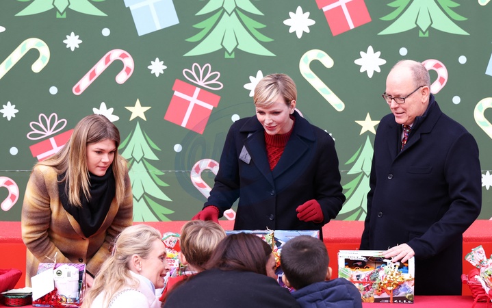 Książę Monako Albert II i księżna Charlene z Monako podczas dostarczania prezentów bożonarodzeniowych w Pałacu Monako