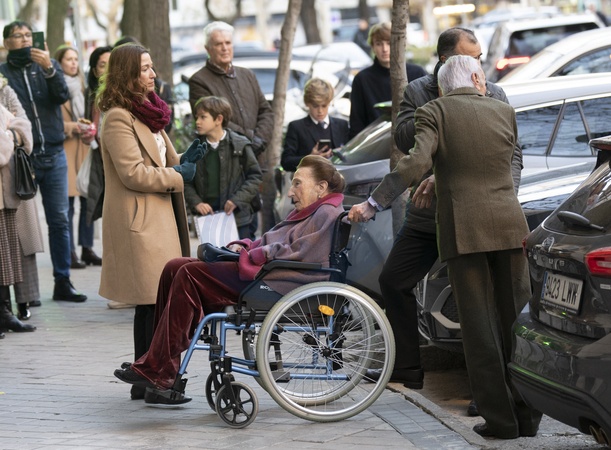 Rodzina królewska Hiszpanii opuszcza restaurację Pa-Bu w Madrycie z okazji 60. urodzin hiszpańskiej księżniczki Eleny