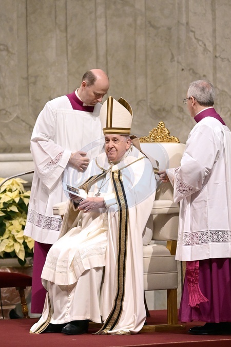 Pope Francis presides over the Christmas Eve Midnight mass in St Peter's Basilica at the Vatican on December 24, 2023.24 Dec 2023, Credit:Maria Laura Antonelli / Avalon
