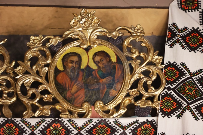 KRYVORIVNIA, UKRAINE - DECEMBER 25, 2023 - An icon in a carved frame is pictured during the divine liturgy at the Church of the Nativity of the Blessed Virgin Mary on Christmas Day, Kryvorivnia, Ivano-Frankivsk region, western Ukraine., Credit:Yurii Rylchuk / Avalon
