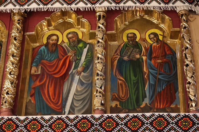 KRYVORIVNIA, UKRAINE - DECEMBER 25, 2023 - Icons are pictured during the divine liturgy at the Church of the Nativity of the Blessed Virgin Mary on Christmas Day, Kryvorivnia, Ivano-Frankivsk region, western Ukraine., Credit:Yurii Rylchuk / Avalon