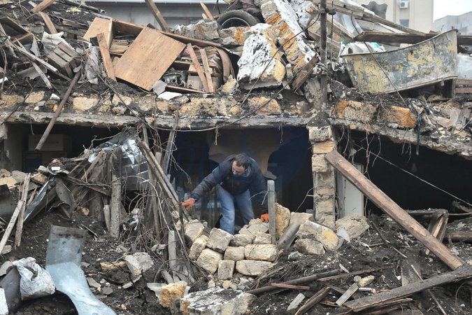 ODESA, UKRAINE - DECEMBER 29, 2023 - A man is seen among the rubble of a residential building destroyed by Russian rocket fire, Odesa, southern Ukraine, Credit:Nina Lyashonok / Avalon