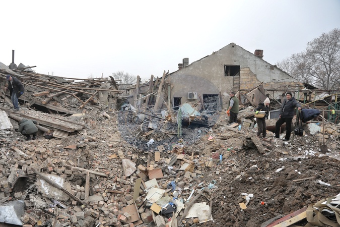ODESA, UKRAINE - DECEMBER 29, 2023 - People are seen among the rubble of a residential building destroyed by Russian rocket fire, Odesa, southern Ukraine, Credit:Nina Lyashonok / Avalon