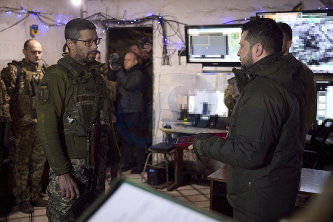 Le président Volodymyr Zelensky visite le front dans la province du Donetsk le 29 décembre 2023. © Ukraine Presidency via Bestimage President Volodymyr Zelensky visits the front line in Donetsk province on 29 December 2023.