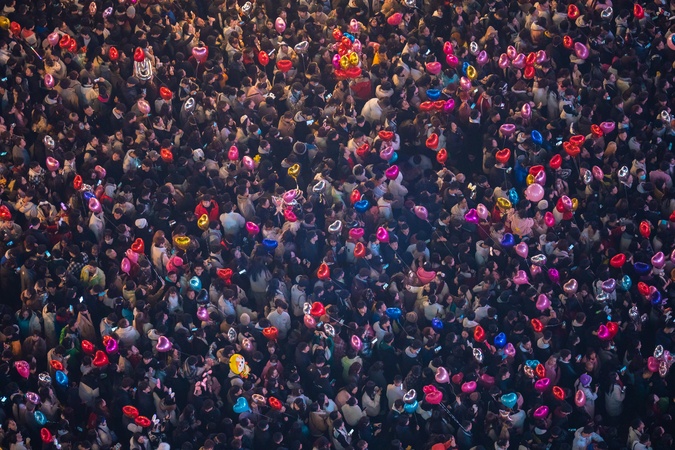 People gather in Jiefangbei Square to usher in the new year in southwest China's Chongqing Municipality Sunday, Dec. 31, 2023., Credit:LI HONGBO / Avalon