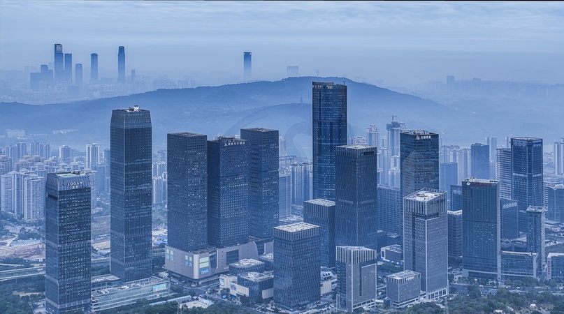 Skyscrapers are seen in the fog in Nanning city in south China's Guangxi Zhuang Autonomous Region Sunday, Dec. 31, 2023., Credit:PENG HUAN / Avalon
