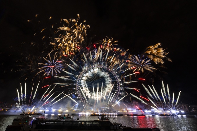 New Years firework display London 2024 at The London Eye on The River Thames 1 Jan 2024, Credit:celebrityphotos uk / Avalon