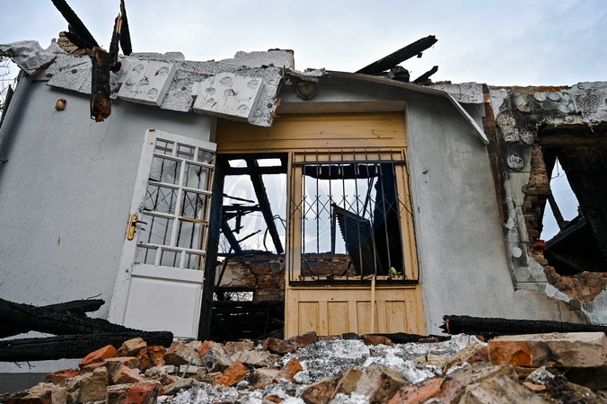 LVIV, UKRAINE - JANUARY 1, 2024 - The museum of Roman Shukhevych, the military leader of the Ukrainian Insurgent Army (UPA), lies in ruins in Bilohorshcha on the outskirts of Lviv, western Ukraine. According to preliminary reports, 10 Russian Shahed drones attacked the Lviv community on New Year's Eve. The falling debris of a Russian drone caused a fire at the Shukhevych Museum., Credit:Anastasiia Smolienko / Avalon