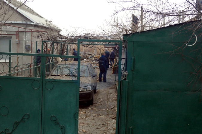 ODESA, UKRAINE - JANUARY 1, 2024 - Men are seen in the yard neighbouring a house damaged in the Russian overnight drone attack which claimed the life of one civilian and saw three others injured, Odesa, southern Ukraine., Credit:Yulii Zozulia / Avalon