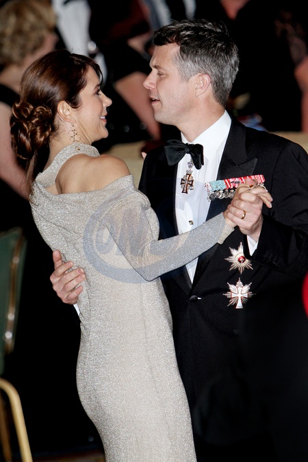 Le prince Frederik et la princesse Mary de Danemark dansent lors du dîner de gala célébrant le centenaire de l'American Scandinave Foundation, le 21 octobre 2011, à New York. Crown Prince Frederik and Crown Princess Mary of Denmark dancing at the Gala Dinner in celebration of the American Scandinavian Foundation's Centenial, on 21 October 2011, in New York