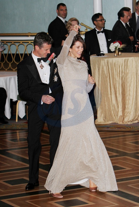 Le prince Frederik et la princesse Mary de Danemark dansent lors du dîner de gala célébrant le centenaire de l'American Scandinave Foundation, le 21 octobre 2011, à New York. Crown Prince Frederik and Crown Princess Mary of Denmark dancing at the Gala Dinner in celebration of the American Scandinavian Foundation's Centenial, on 21 October 2011, in New York
