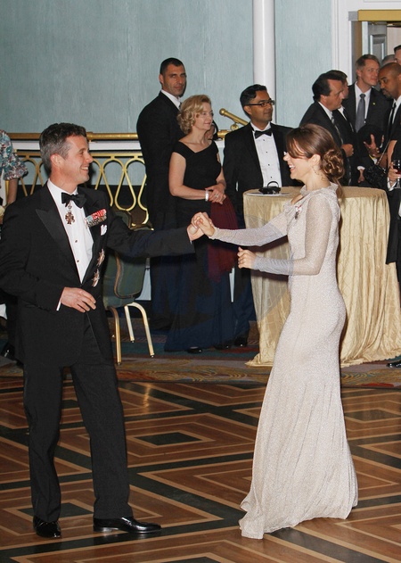 Le prince Frederik et la princesse Mary de Danemark dansent lors du dîner de gala célébrant le centenaire de l'American Scandinave Foundation, le 21 octobre 2011, à New York. Crown Prince Frederik and Crown Princess Mary of Denmark dancing at the Gala Dinner in celebration of the American Scandinavian Foundation's Centenial, on 21 October 2011, in New York