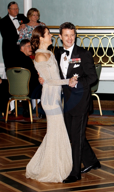 Le prince Frederik et la princesse Mary de Danemark dansent lors du dîner de gala célébrant le centenaire de l'American Scandinave Foundation, le 21 octobre 2011, à New York. Crown Prince Frederik and Crown Princess Mary of Denmark dancing at the Gala Dinner in celebration of the American Scandinavian Foundation's Centenial, on 21 October 2011, in New York