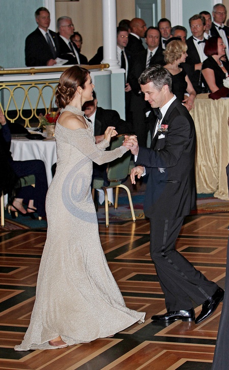 Le prince Frederik et la princesse Mary de Danemark dansent lors du dîner de gala célébrant le centenaire de l'American Scandinave Foundation, le 21 octobre 2011, à New York. Crown Prince Frederik and Crown Princess Mary of Denmark dancing at the Gala Dinner in celebration of the American Scandinavian Foundation's Centenial, on 21 October 2011, in New York