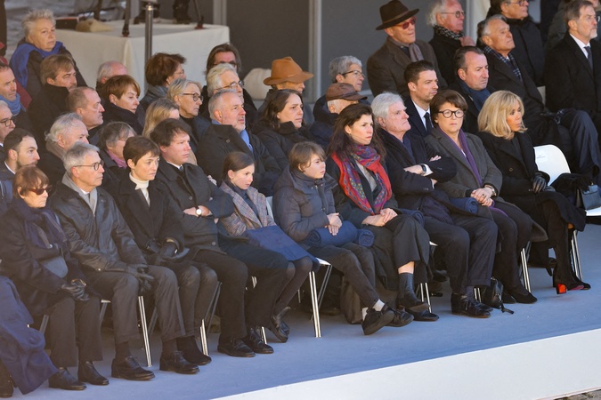 Clémentine Aubry, ses enfants, Jean-Louis Brochen, Martine Aubry, Brigitte Macron - Hommage national à M. Jacques Delors, dans la cour d'honneur de l'Hôtel national des Invalides à Paris le 5 janvier 2024. © Dominique Jacovides / Bestimage National tribute to Jacques Delors, in the main courtyard of the Hôtel national des Invalides in Paris on 5 January 2024