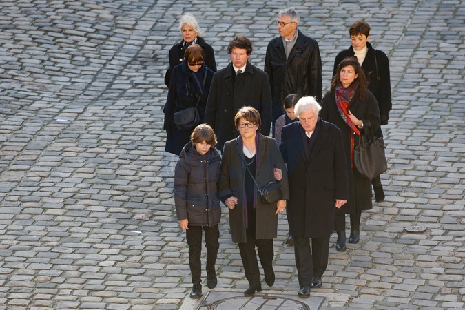 Martine Aubry, son mari Jean-Louis Brochen, Clémentine Aubry avec ses enfants et son mari - Hommage national à M. Jacques Delors, dans la cour d'honneur de l'Hôtel national des Invalides à Paris le 5 janvier 2024. © Dominique Jacovides / Bestimage National tribute to Jacques Delors, in the main courtyard of the Hôtel national des Invalides in Paris on 5 January 2024