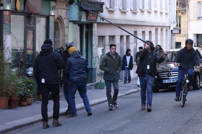 Exclusif - Rami Malek sur le tournage de son dernier film à Paris, France, le 5 janvier 2024. No Web pour la Belgique et la Suisse Exclusive - For Germany Call For Price - Rami Malek on the set of his latest film in Paris, France, on January 5, 2024.