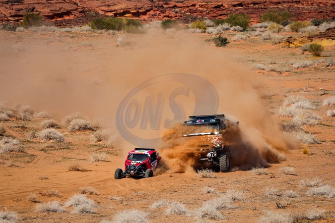 350 GROUWELS Roger (nld), VAN NEDERPELT Ronald (nld), Raceart / QFF Racing, Can-Am Maverick X3, 615 HUZINK Gert (nld), ROESINIK Martin (nld), BURRSEN Rob (nld), Jongbloed Dakar Team, Renault C460 Hybrid, FIA Truck, action during the Stage 1 of the Dakar 2024 on January 6, 2024 between Al-Ula and Al Henakiyah, Saudi Arabia. © Antonin Vincent/DPPI/Panoramic/Bestimage
