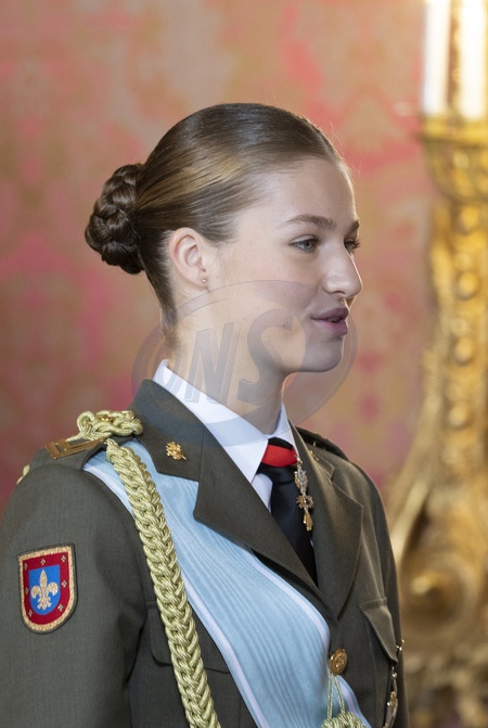 Le roi Felipe VI, la reine Letizia d'Espagne et la princesse Leonor lors de la réception militaire de Pâques au Palais Royal, le 6 janvier 2024 à Madrid, Espagne, le 6 janvier 2024. Crownprincess Leonor - Spanish Royals host the traditional annual Military Pasques parade and reception at The Royal Palace in Madrid. January 6, 2024.