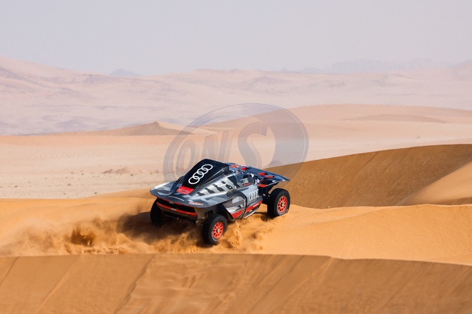 202 PETERHANSEL Stéphane (fra), BOULANGER Edouard (fra), Team Audi Sport, Audi RS Q E-Tron E2, FIA Ultimate, FIA W2RC, action during the Stage 2 of the Dakar 2024 on January 7, 2024 between Al Henakiyah and Al Duwadimi, Saudi Arabia. © Florent Gooden/DPPI/Panoramic/Bestimage