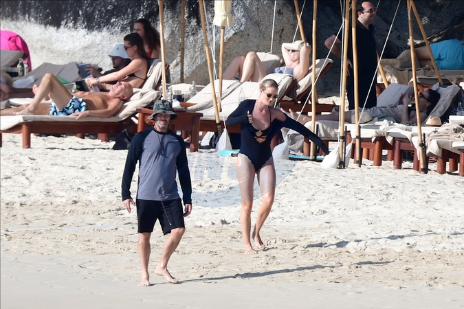 Exclusif - Prix spécial - No Web - Exclusif - Prix spécial - No Web - Jason Statham et sa compagne Rosie Huntington-Whiteley s'essaient à la planche volante ou foil électrique lors de leurs vacances à Phuket, Thaïlande le 2 janvier 2024. Exclusive - For Germany call for price - No web - Jason Statham and his partner Rosie Huntington-Whiteley try out an electric hoverboard or foil during their vacation in Phuket, Thailand on January 2, 2024.