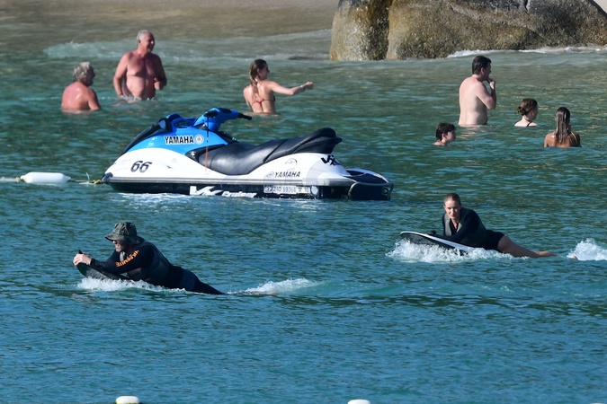 Exclusif - Prix spécial - No Web - Exclusif - Prix spécial - No Web - Jason Statham et sa compagne Rosie Huntington-Whiteley s'essaient à la planche volante ou foil électrique lors de leurs vacances à Phuket, Thaïlande le 2 janvier 2024. Exclusive - For Germany call for price - No web - Jason Statham and his partner Rosie Huntington-Whiteley try out an electric hoverboard or foil during their vacation in Phuket, Thailand on January 2, 2024.