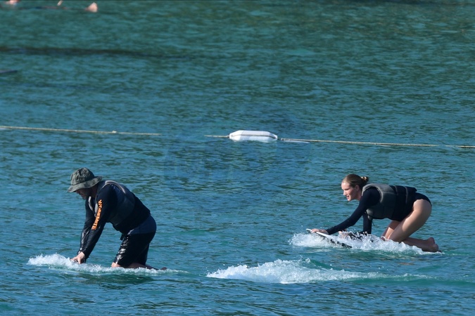 Exclusif - Prix spécial - No Web - Exclusif - Prix spécial - No Web - Jason Statham et sa compagne Rosie Huntington-Whiteley s'essaient à la planche volante ou foil électrique lors de leurs vacances à Phuket, Thaïlande le 2 janvier 2024. Exclusive - For Germany call for price - No web - Jason Statham and his partner Rosie Huntington-Whiteley try out an electric hoverboard or foil during their vacation in Phuket, Thailand on January 2, 2024.