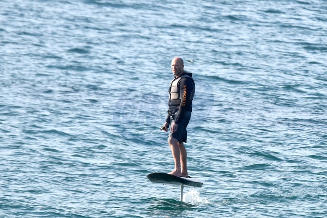 Exclusif - Prix spécial - No Web - Exclusif - Prix spécial - No Web - Jason Statham et sa compagne Rosie Huntington-Whiteley s'essaient à la planche volante ou foil électrique lors de leurs vacances à Phuket, Thaïlande le 2 janvier 2024. Exclusive - For Germany call for price - No web - Jason Statham and his partner Rosie Huntington-Whiteley try out an electric hoverboard or foil during their vacation in Phuket, Thailand on January 2, 2024.